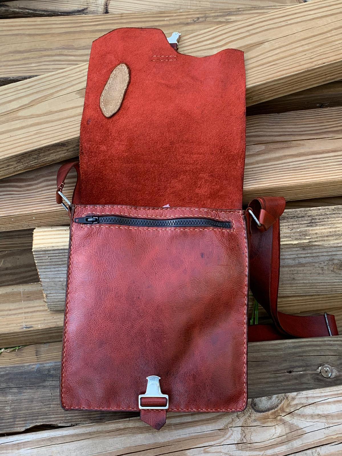 - two inside hand stitched pocket (holds a cell phone and one pen or pencil)