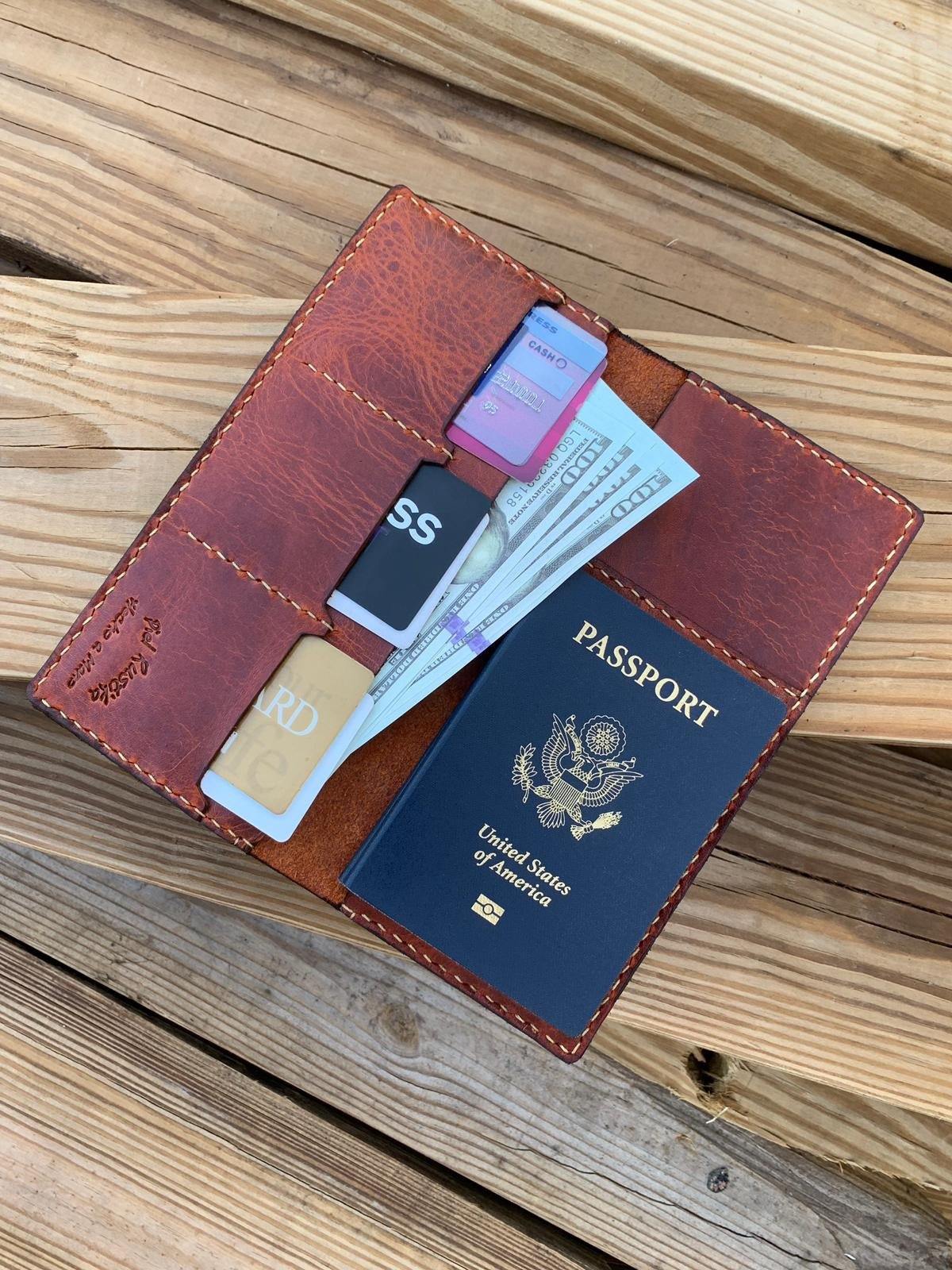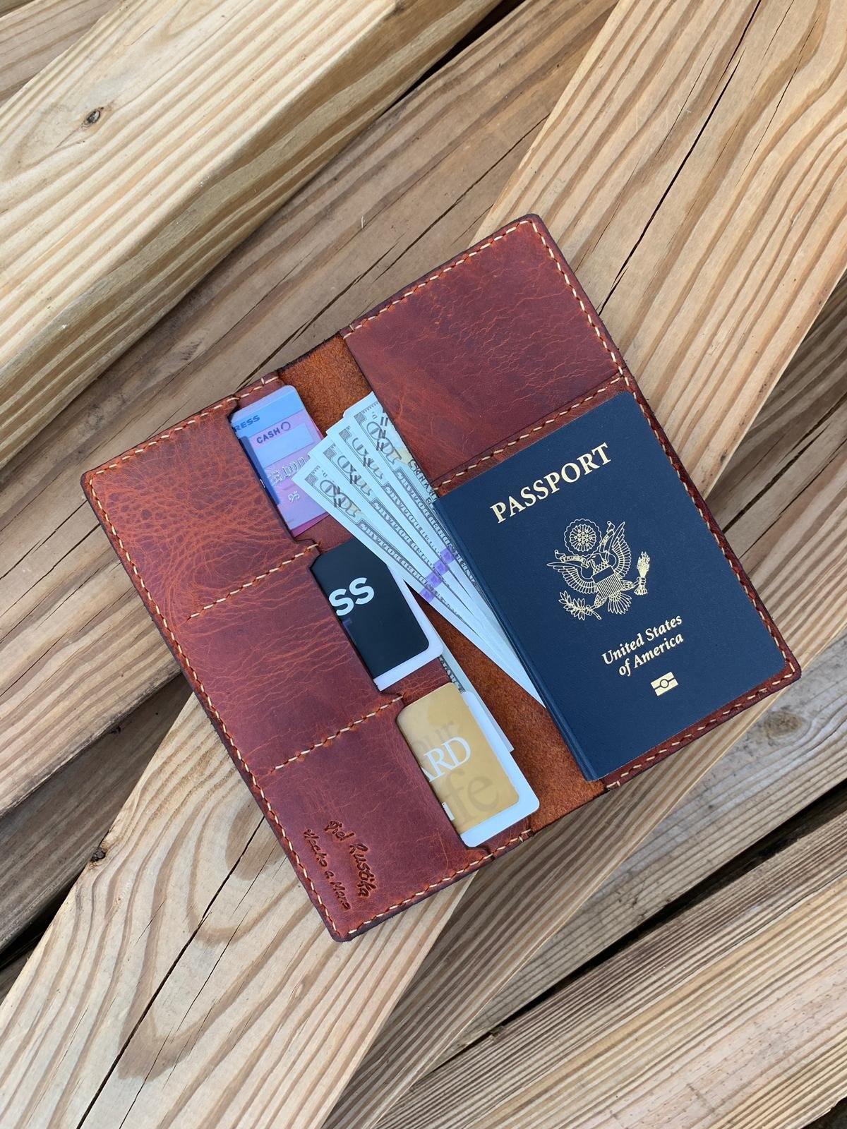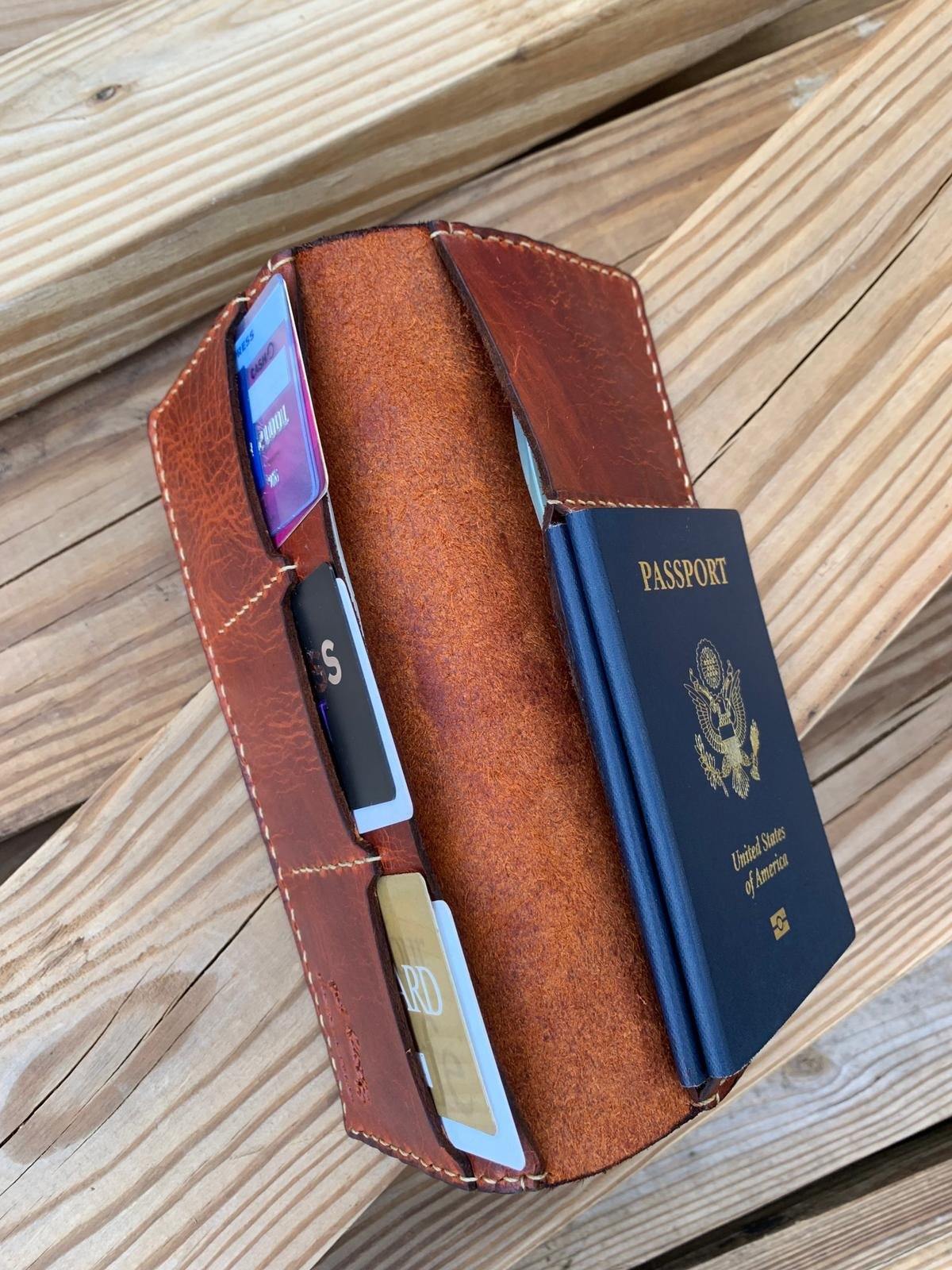 - Passport slot holds up to two passport books.