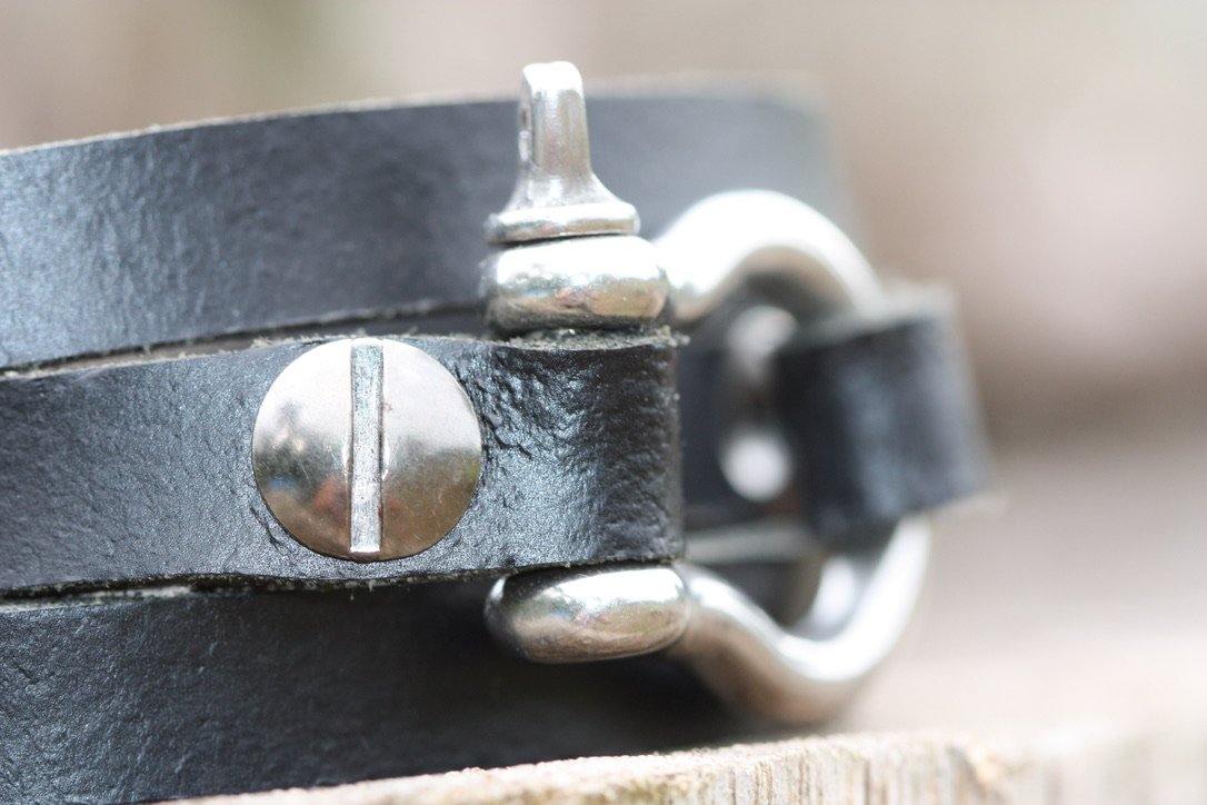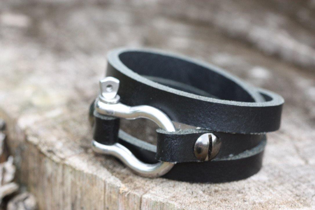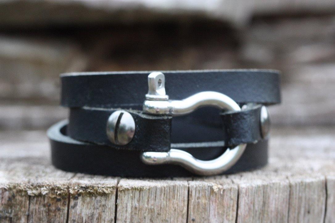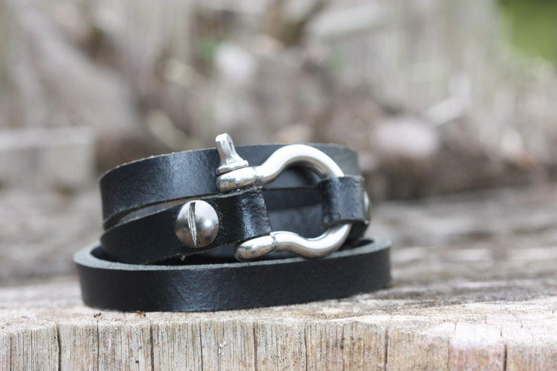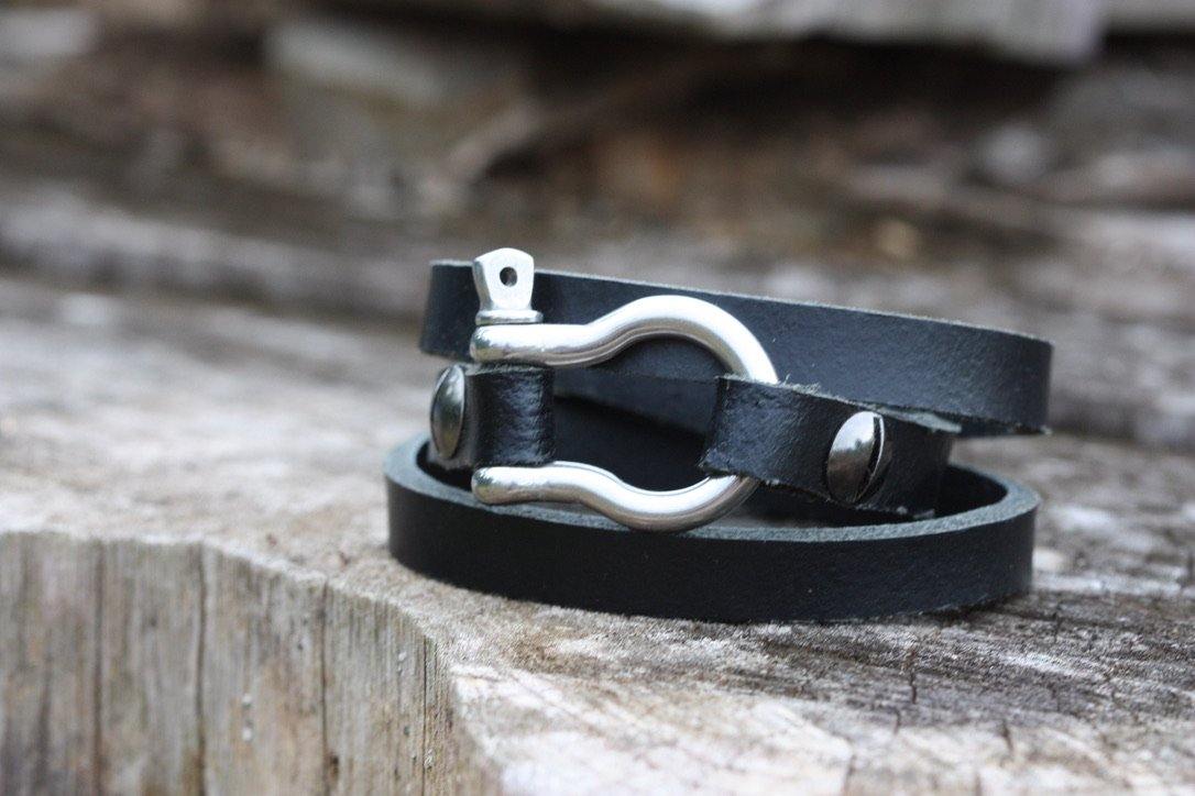 A modern classic wraparound bracelet with a distinctive stainless steel shackle that brings an unexpected mix to this piece.